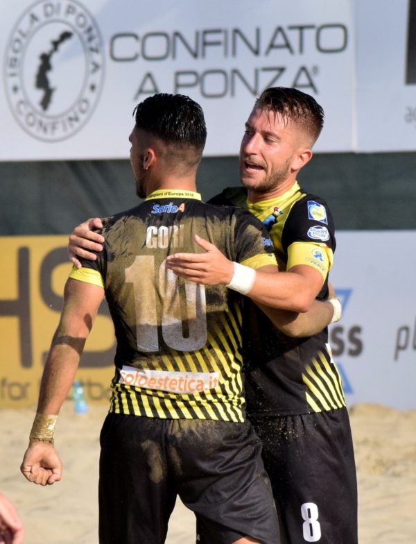 il gol di Pasquali, da lontanissimo con la palla che impennandosi sulla sabbia ha battuto un incolpevole Carpita, e di Carotenuto.