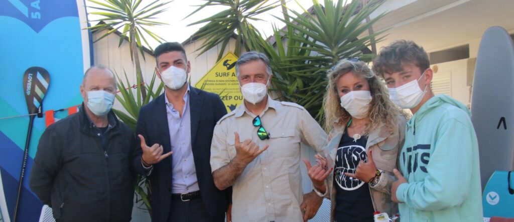 Presenti anche i rappresentanti dell’associazione Sons Of The Ocean, il cui presidente nazionale Matteo Nani, ha spiegato bene oltre che le finalità e gli obiettivi, anche lo speciale rapporto che li lega al Viareggio Surf Club. Prima di chiudere la presentazione, Dini ha ricordato che la vera sfida del club sarà il progetto Storm Riders, ovvero la continuazione delle attività anche nei mesi invernali, quando i surfisti locali potranno usufruire di spogliatoi e docce calda (covid permettendo) e i più giovani essere assistiti nelle loro uscite in acqua. Ciliegina finale: una palestra in spiaggia, stile Venice Beach, sarà allestita per dare modo a tutti gli sportivi che frequentano il Bagno Flora, di tenersi in perfetta forma, allenandosi all’aperto, tra una tuffo, una surfata e una partita di beach volley o beach soccer. Come direbbe George… “What else!”