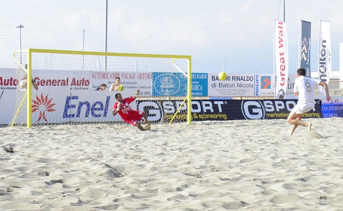 Fra italiani e stranieri, ben diciassette giocatori che erano in campo oggi, fra le due squadre, hanno indossato le maglie delle proprie nazionali. Italiani, brasiliani,portoghesi, spagnoli giusto per spiegare ad un pubblico poco attento il livello di qualità raggiunto in queste semifinali al Beach Stadium di Viareggio. Così come in Viareggio- Terracina dove la qualità dei singoli dava giusto la dimensione di un livello di gare di valore internazionale assoluto. Colosseum e Catania due delle pretendenti al successo finale si sono affrotnate senza esclusione di colpi fra numeri di alta acorbazia e grossa tensione in campo che gli arbitri faticavano a contenere. A farne le spese fra il caldo e la tensione Mister Belluso che, dopo la fine della gara, ha accusato un lieve malore ma tutto è tornato presto alla normalità ed il mister ha potuto riunirsi alla squadra per festeggiare un successo maturato al fotofinish. A lasciare il via libera ai siciliani Di Maio del Colosseum che, dopo il rigore realizzato da Juninho, ha sparato il proprio tiro (nella foto) alle stelle. Catania ringrazia e festeggia la finale che la vedrà domani opposta a V iareggio. Proprio Catania fu la prima squadra affrontata dal Viareggio Beach Soccer due anni fa al Circo Massimo a Roma I viaregggino condussero tutta la gara per poi subire il ritorno siciliano ed essere sconfitti sul filo di lana ed estromessi dalla Coppa proprio dall’esperienza dei catanesi. Domani potrebbe essere l’occasione per riscattare quella sconfitta e dare un senso al grande lavoro fatto fino ad oggi su quel branco di bagnanti un po’ smarriti.