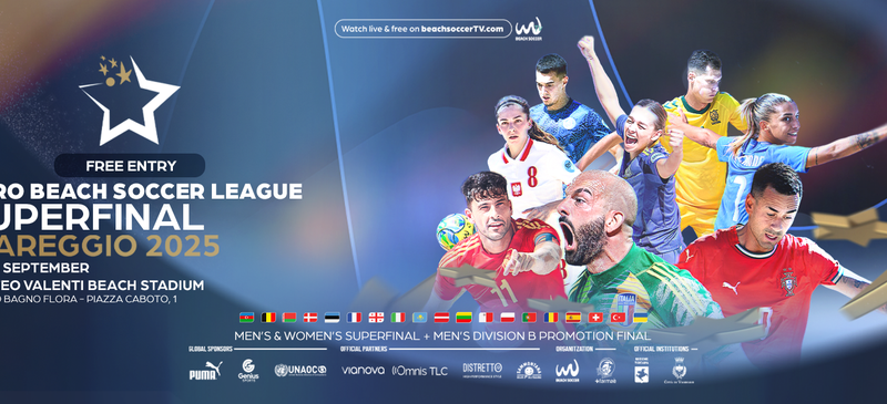 Leggi tuttoDa martedì 9 a domenica 14 settembre Viareggio sarà la capitale europea del beach soccer. Per sei giorni, al beach